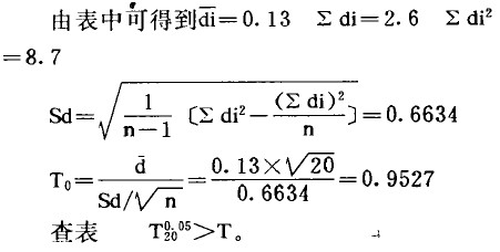 從計(jì)算結(jié)果分析兩種方法的檢驗(yàn)結(jié)果在90%的置信水平時(shí)無顯著性差異,用儀器法測(cè)定面粉的濕面筋值是可行的。
