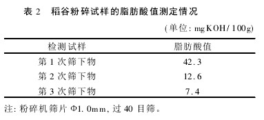 從表2中可以看出,脂肪酸值的測定結(jié)果在很大程度上也受粉碎條件、粉碎程度和細(xì)度影響,其影響有待進(jìn)一步研究。