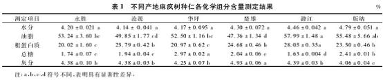 1.3.4種仁灰分含量測定 參照GB5505—1985糧食、油料檢驗灰分測定方法。1.3.5種仁糖含量測定參照3,5-二硝基水楊酸法測糖原理測定。