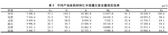 不同產地麻瘋樹種仁中微量元素含量測定結果見表2。