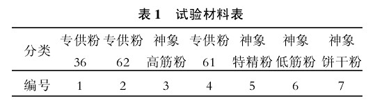 1.1 試驗材料試驗材料均為鄭州海嘉食品有限公司生產(chǎn)的面粉,其中專供粉36、專供粉62、專供粉61分別為某些食品廠面條專供粉。