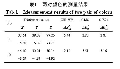 色差是樣品質(zhì)量檢測與評(píng)定的一個(gè)重要指標(biāo),由于色差公式選擇的不同,色差值也可能出現(xiàn)很大的不同。例如,表 1 列出了兩對(duì)顏色分別用 3 種色差公式測量的結(jié)果,可以看出,使用不同的色差公式測量的色差結(jié)果差別很大,很有可能給測試帶來誤判。因而在測量色差時(shí),色差公式的選擇同樣也要重視。