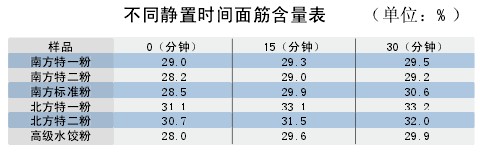不同靜置時(shí)間(分鐘)面筋含量見下表:
