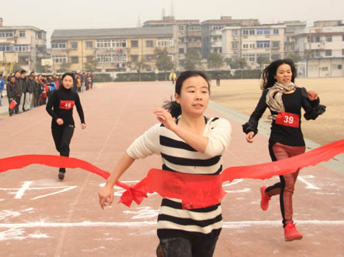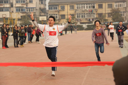 近了,更近了,王宏文的追跑拉近了兩個(gè)人的距離,劉梓軒從場(chǎng)下拉拉隊(duì)的喊聲里似乎感覺(jué)到情況不妙,只見(jiàn)他閉起雙眼,高臺(tái)雙腿,更加賣(mài)力的奔跑。就在大家猜測(cè)此次比賽到底誰(shuí)是冠軍的時(shí)候,沒(méi)想到劉梓軒和王宏文竟一同闖過(guò)了紅線,成績(jī)并列第一。比賽結(jié)束,兩位領(lǐng)隊(duì)熱情的擁抱,這是本次活動(dòng)最讓人意想不到的一幕,場(chǎng)下的歡呼聲表達(dá)了大家的驚喜。