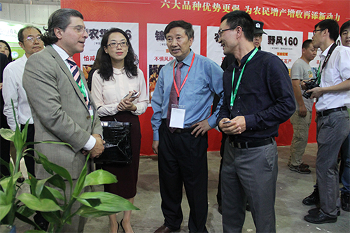 種子雙交會期間,農(nóng)業(yè)部種子管理局局長張延秋、副局長馬淑萍一行還帶領前來參加中國-阿根廷種業(yè)交流峰會的阿根廷代表團參觀了托普云農(nóng)展區(qū)。阿根廷國家種子研究所董事會主席拉威諾勒 萊英姆多農(nóng)業(yè)工程師仔細觀摩了公司所展出的種子檢驗儀器和系統(tǒng),并與陳渝陽總經(jīng)理進行交流。