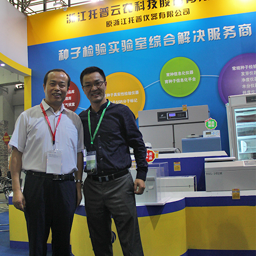 托普云農(nóng)展出了自主研發(fā)生產(chǎn)的種子檢驗儀器和實驗室儀器。農(nóng)業(yè)部種子管理局張延秋局長、杭大鵬書記一行,甘肅省種子管理局常宏局長一行先后蒞臨托普展區(qū)參觀指導,并與陳渝陽總經(jīng)理進行交談,對托普云農(nóng)在“互聯(lián)網(wǎng)+種業(yè)模式轉(zhuǎn)型變革”領域做出的成果給予肯定。